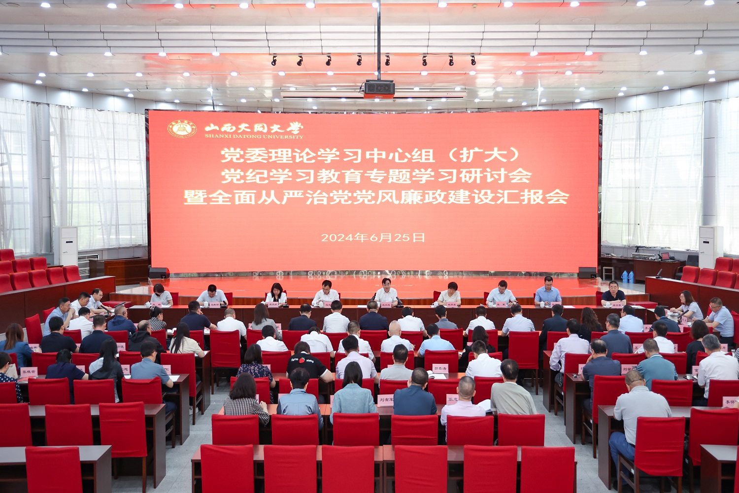 6月25日,校党委召开理论学习中心组(扩大)党纪学习教育专题学习研讨会暨全面从严治党党风廉政建设汇报会,围绕六月份党纪学习教育研讨主题开展学习,听取全面从严治党党风廉政建设工作汇报。校党委书记赵水民主持会议并作总结发言。