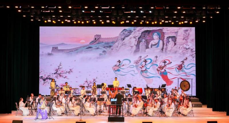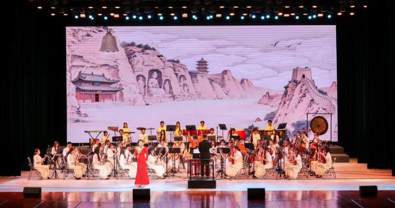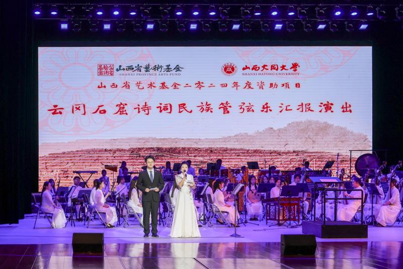 6月5日,由山西省艺术基金支持的大型民族管弦乐作品《云冈石窟诗词民族管弦乐》首演活动在山西大同大学御东校区本真楼精彩举行。作品以世界文化遗产云冈石窟为创作灵感,融合诗词吟诵与民族管弦乐,为观众呈现了一场跨越千年的艺术盛宴,展现了山西深厚的历史文化底蕴与现代艺术创新力。