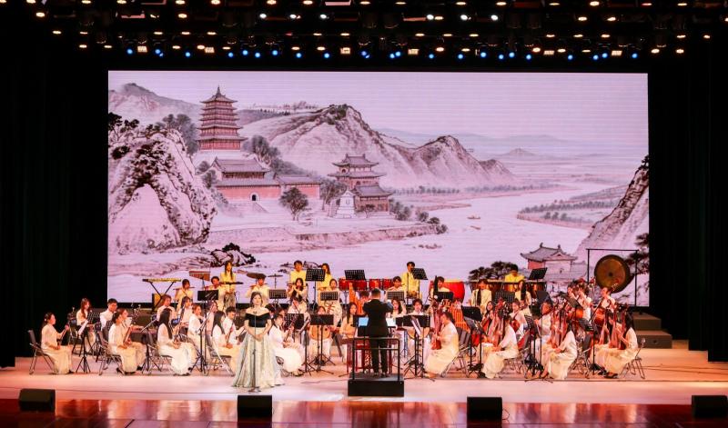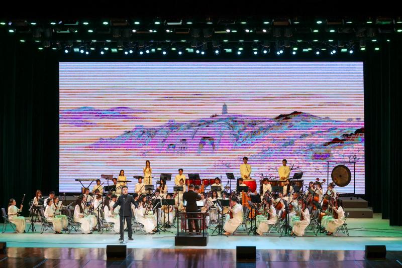 《云冈石窟诗词民族管弦乐》是山西省艺术基金2024年度重点资助项目。我校文学院高震博士历时5年全面搜集并整理了历代文人题咏云冈石窟诗词80余首,音乐学院曹明明副教授以此为基础,组建团队,并结合云冈诗词的历史背景、文化内涵、艺术特征,同业内优秀作曲家一道改编歌词,学校民族管弦乐团谱曲、演奏,优秀专业教师联袂演唱,才使得这一项目完美呈现在观众面前。
