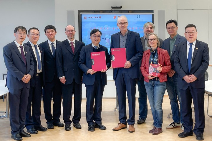 在德国北豪森应用技术大学,由校务长扬·丰克教授带领的学校相关负责人,就联合开展中外合作办学项目与我校进行了深度交流。双方介绍了学校办学情况、专业设置及师资培养体系,就当前双方拟联合申报的“电气工程及其自动化”和“电子信息科学与技术”中外合作办学项目的细节进行了详细对接。对两校开展教师培训、科研合作、学生研学等长期与短期合作内容进行探讨,签署《师资培训及学生赴德研学合作谅解备忘录》,为项目顺利推进奠定坚实基础。