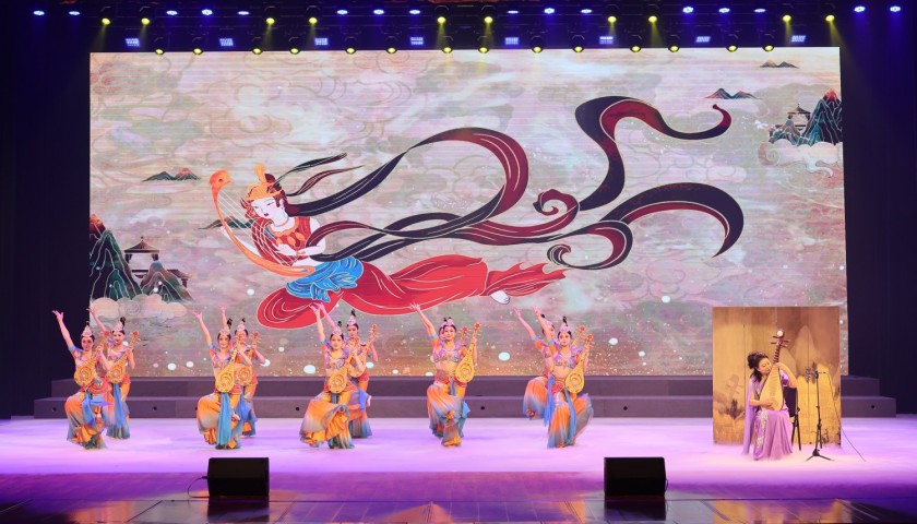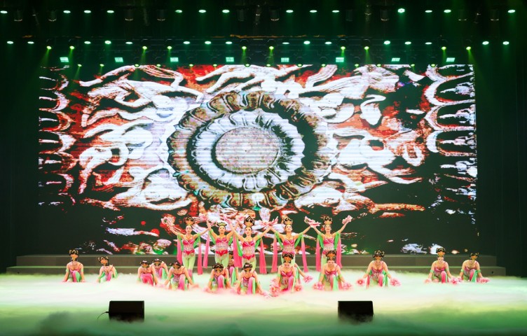 下半场乐舞表演部分,集中呈现了我校近20年深耕北魏乐舞文化、致力于云冈乐舞创编的研究成果。于2025年获批的教育部全国高校思政原创文化精品项目的舞蹈诗剧《云冈之舞》核心片段精彩亮相,让观众直观感受云冈艺术的当代表达。