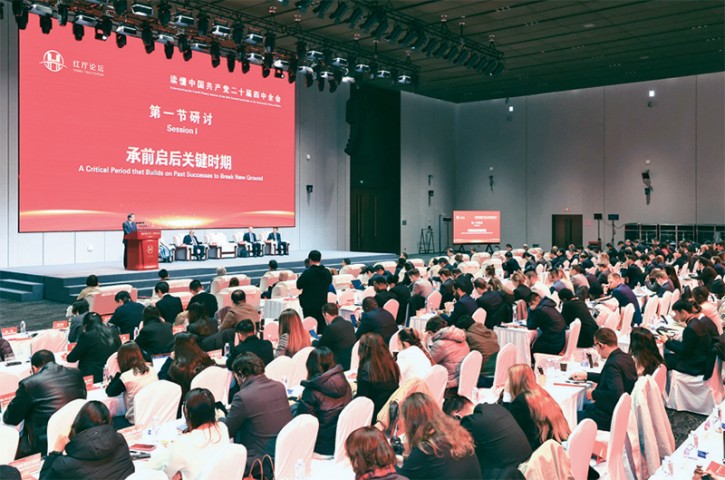 2025年11月7日,中共中央党史和文献研究院国家高端智库与新华社国家高端智库联合举办“红厅论坛:读懂中国共产党二十届四中全会”国际研讨会,共同发布《基本实现中国式现代化的关键阶段——“十五五”时期中国经济社会发展的战略擘画》智库报告。图为当日拍摄的红厅论坛研讨现场。 新华社记者 殷刚/摄