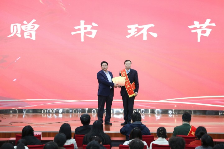 宣讲结束后,山西省学雷锋巡讲团向校团委赠送书籍,鼓励青年学子多读书、学精神、践行动,以书香涵养品格,以志愿点亮青春。